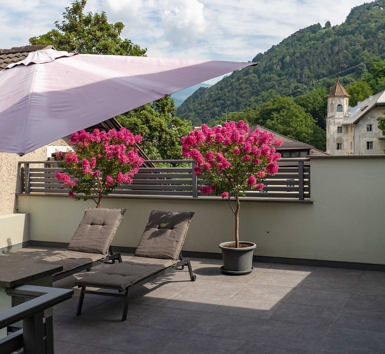 Unser exklusives Penthouse Apartment mit Panorama-Terrasse befindet sich im Herzen von Südtirol und bietet Übernachtungsmöglichkeiten mit kostenfreiem Privatparkplatz.